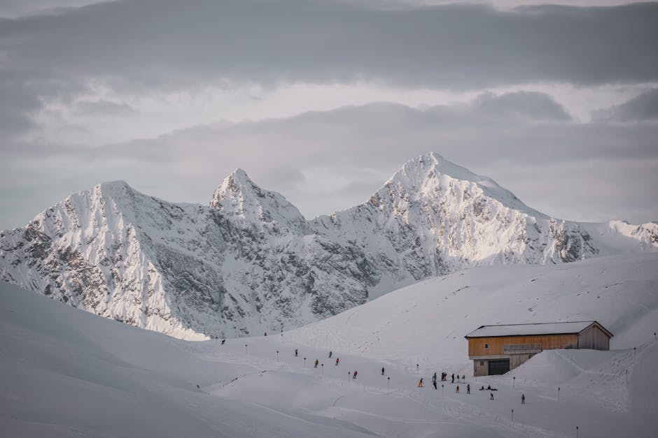Snow Mountains – Breathtaking snow-covered peaks and cabin in War #14899422